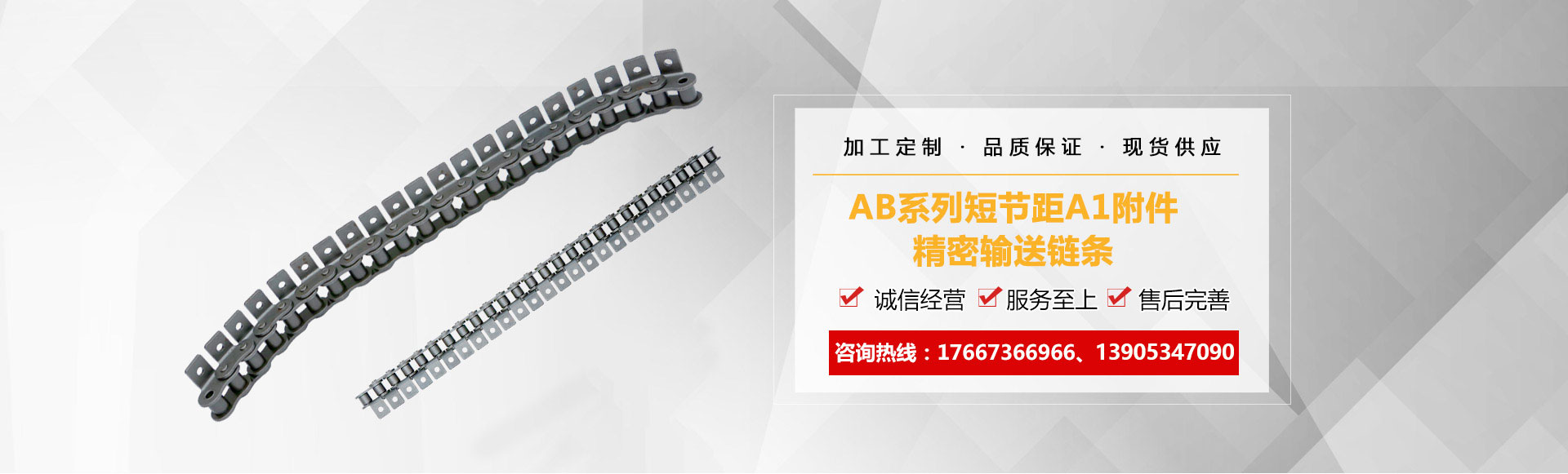1、鏈條產(chǎn)品有各種不銹鋼、碳鋼輸送鏈條、雙節(jié)距輸送鏈條、空心銷軸鏈條、不銹鋼塑料平頂鏈、不銹鋼精密滾子鏈、特殊工礦輸送鏈、耐高溫輸送鏈條、非標鏈條、彎板非標鏈條、大節(jié)距輸送鏈條、各種鏈條用滾子(材質碳鋼、不銹鋼)等。